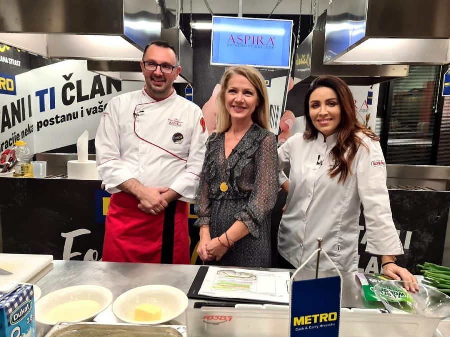 Metro Cash & Carry Croatia together with Aspira College organized its first virtual dinner. Chef Damir Tomljanović, a lecturer in the culinary practicum of the Aspira College, and Lana Klingor Mihić, the winner of the second season of Celebrity MasterChef, cooked for the viewers on Metro Cash & Carry Croatia Facebook profile. Barbara Kolar was the moderator of the program in which chefs Damir and Lana had to prepare 2 dishes in an hour.